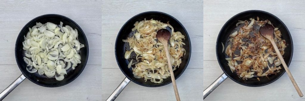 - Heat 2 tbsp butter in a pan over medium heat. Add the onions and cook slowly for about 20 minutes until deep brown and caramelised. Add the anchovies and cook for 1-2 minutes more until they dissolve into the onions.