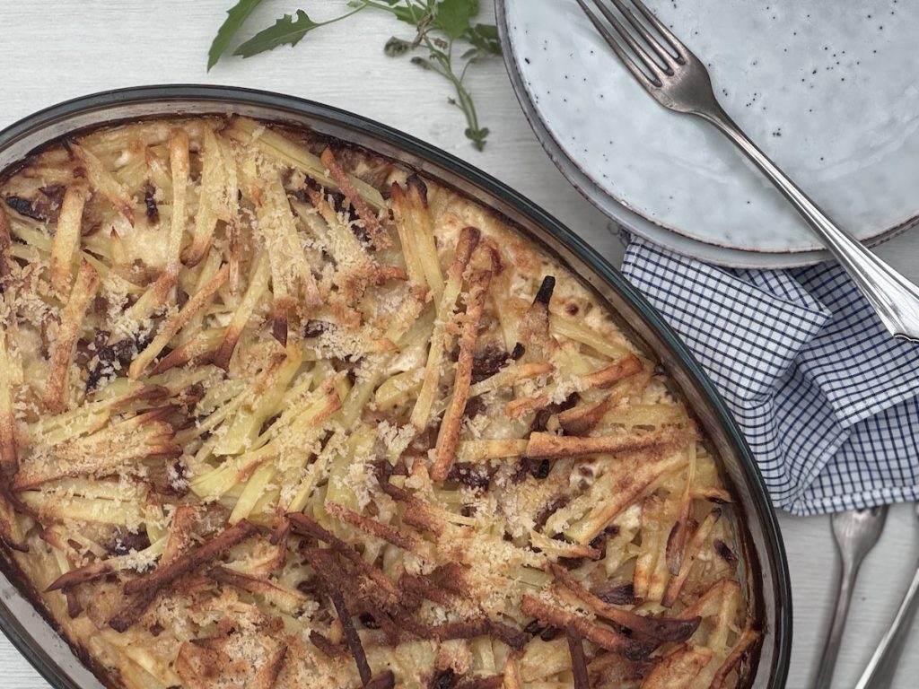 While this dish is often paired with fish in the Nordics due to the savory seafood element, do not feel limited. The anchovies mostly add an intense umami flavor rather than tasting explicitly “fishy,” so this casserole goes equally well with grilled or roasted meat. It is a fantastic accompaniment to a perfectly seared steak or a rich roast lamb. The creamy texture and savory flavor are robust enough to stand up to any meat, creating a perfect, well-balanced plate.
