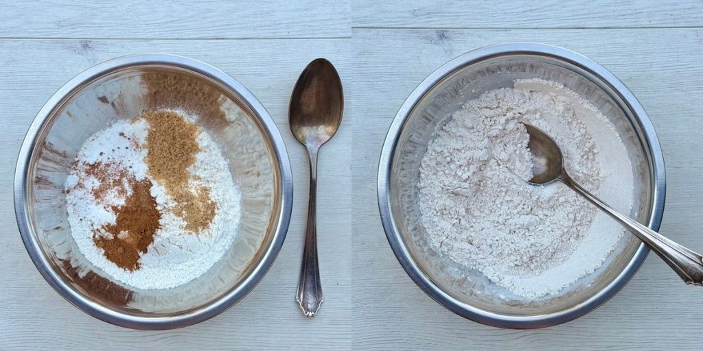 • Mix the flour, sugar, and spices together with a pinch of salt.
