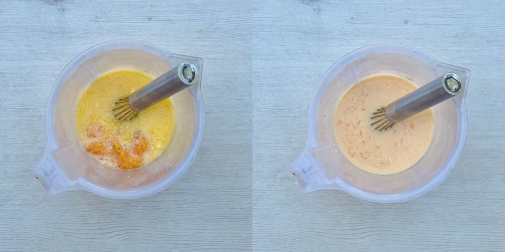• Whisk the milk, pumpkin puree, egg and melted butter together.
