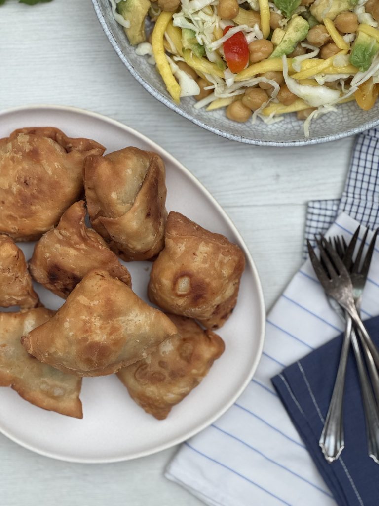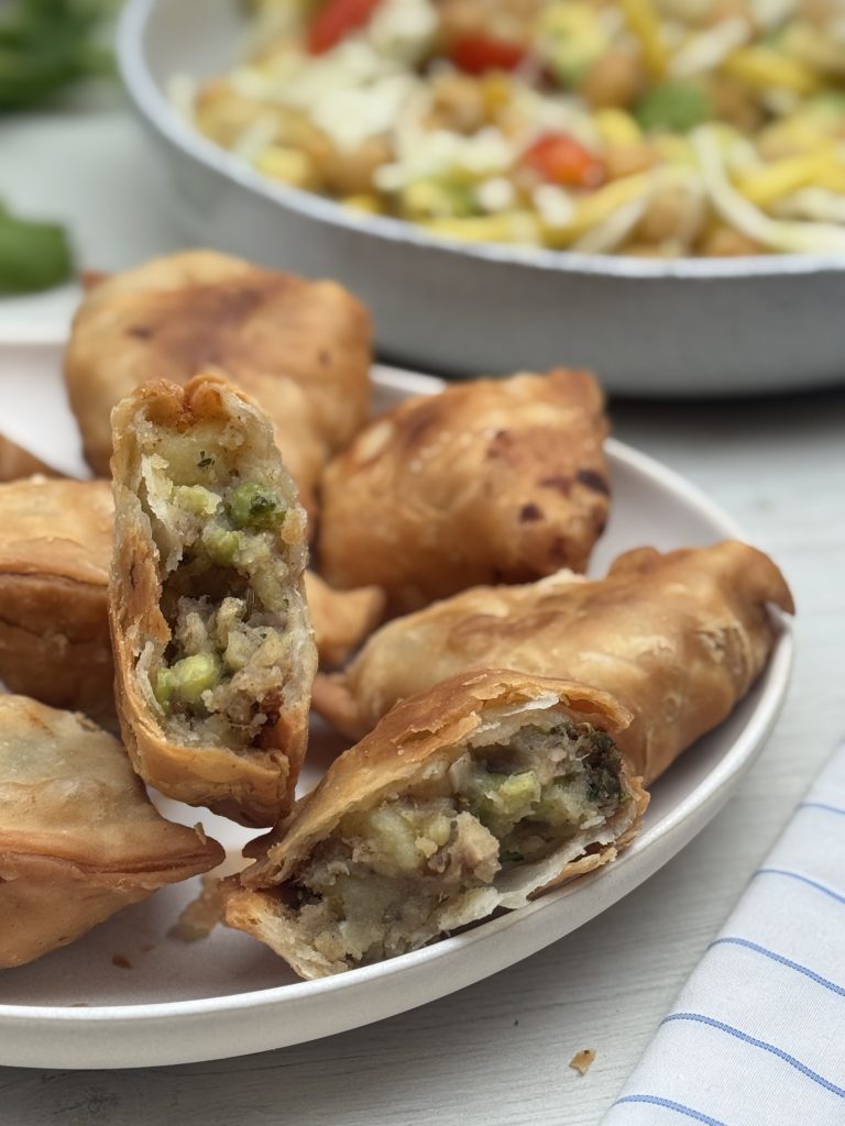 Samosas are small, savory pastries, usually triangular, that are traditionally fried to a perfect golden crisp and filled with spiced vegetables or meat. Though they are a culinary icon of India today, samosas actually have Persian origins. They are believed to have originated in the Middle East and Central Asia centuries ago, traveling along ancient trade routes before settling in the Indian subcontinent. There, the pastry was embraced and adapted, becoming the vegetarian snack (often filled with potatoes and peas) that we know and adore today.