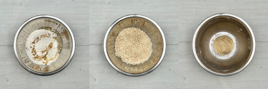 - Add the water and bring together into a dough. Cover with plastic wrap and leave to rest for 30 minutes.