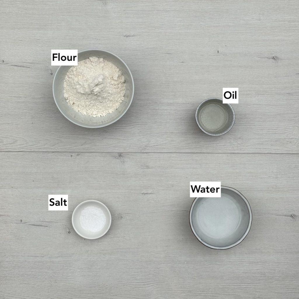 - Mix the flour, oil and salt in a bowl, rubbing together with your fingertips until the mix resembles breadcrumbs.