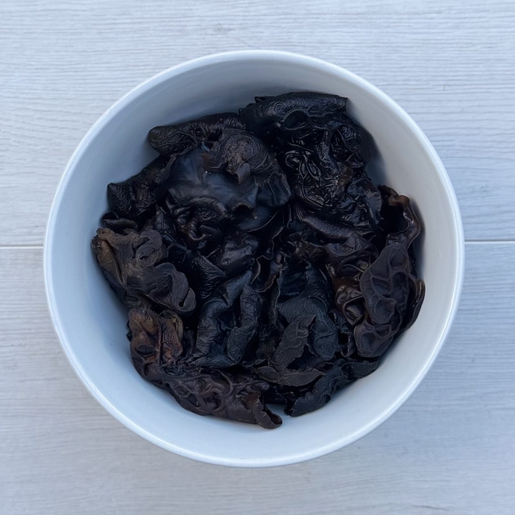 - 1/2 cup dried wood ear mushrooms rehydrated in hot water, and roughly chopped