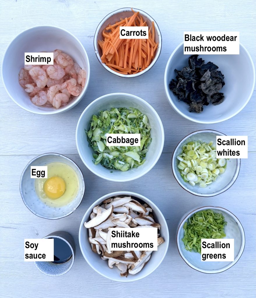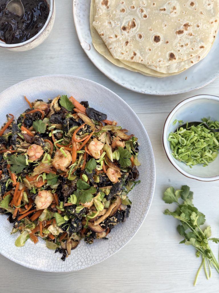 If you’ve only ever had moo shu with pork before, I urge you to break the chains and give my Shrimp Moo Shu a try! Quick and easy to make, and it’s also a great way to use up odds and ends of vegetables from the crisper drawer in the fridge. Eggs and wood ear mushrooms are compulsory, but the rest is up to you! Let me know in the comments how you get on.