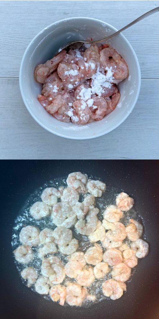 - Mix the shrimp with the cornflour and season with salt and pepper