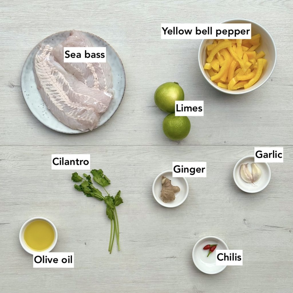 - 10 oz sea bass filet or similar white fish